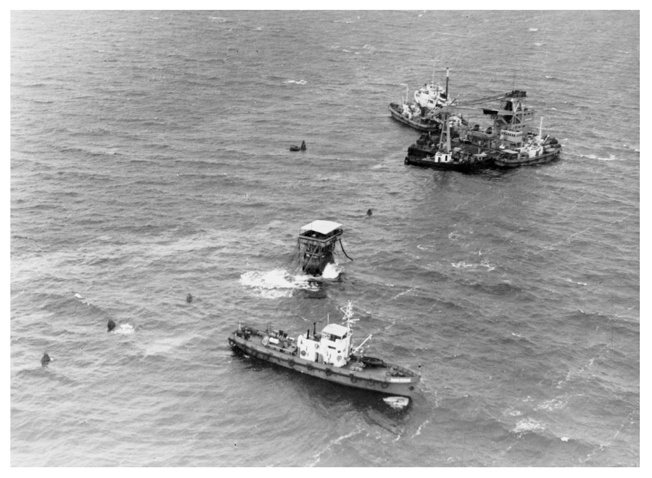 Предварительно этот метод проверили в ноябре 1972 года путем подъема емкости массой 12 т с глубины 22 м. Одновременно были решены вопросы транспортировки больших масс вспененных гранул полистирола с применением пневмотранспортных систем.