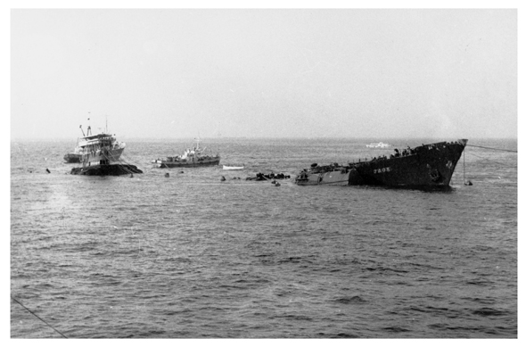 Всплывший "Моздок" в окружении судов АСПТР. 19 августа 1974 года