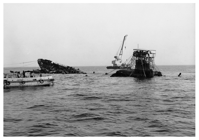 Затем развернулись работы по извлечению грузов из затонувшего судна. Последний из-за своей разнородности потребовал применения большого числа различных приспособлений и разработки множества технологических процессов.