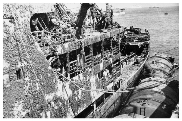Перед выгрузкой трюмов были проведены работы по расчистке палубы судна от заваленных мачт, стрел и обломков судовых конструкций, заброшенных на него и вокруг него при взрыве танкера "Лом".