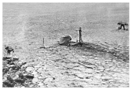 Место гибели теплохода "Моздок". Зима 1972 года. Над водой видны дымовая труба и еще не снесены льдом мачты